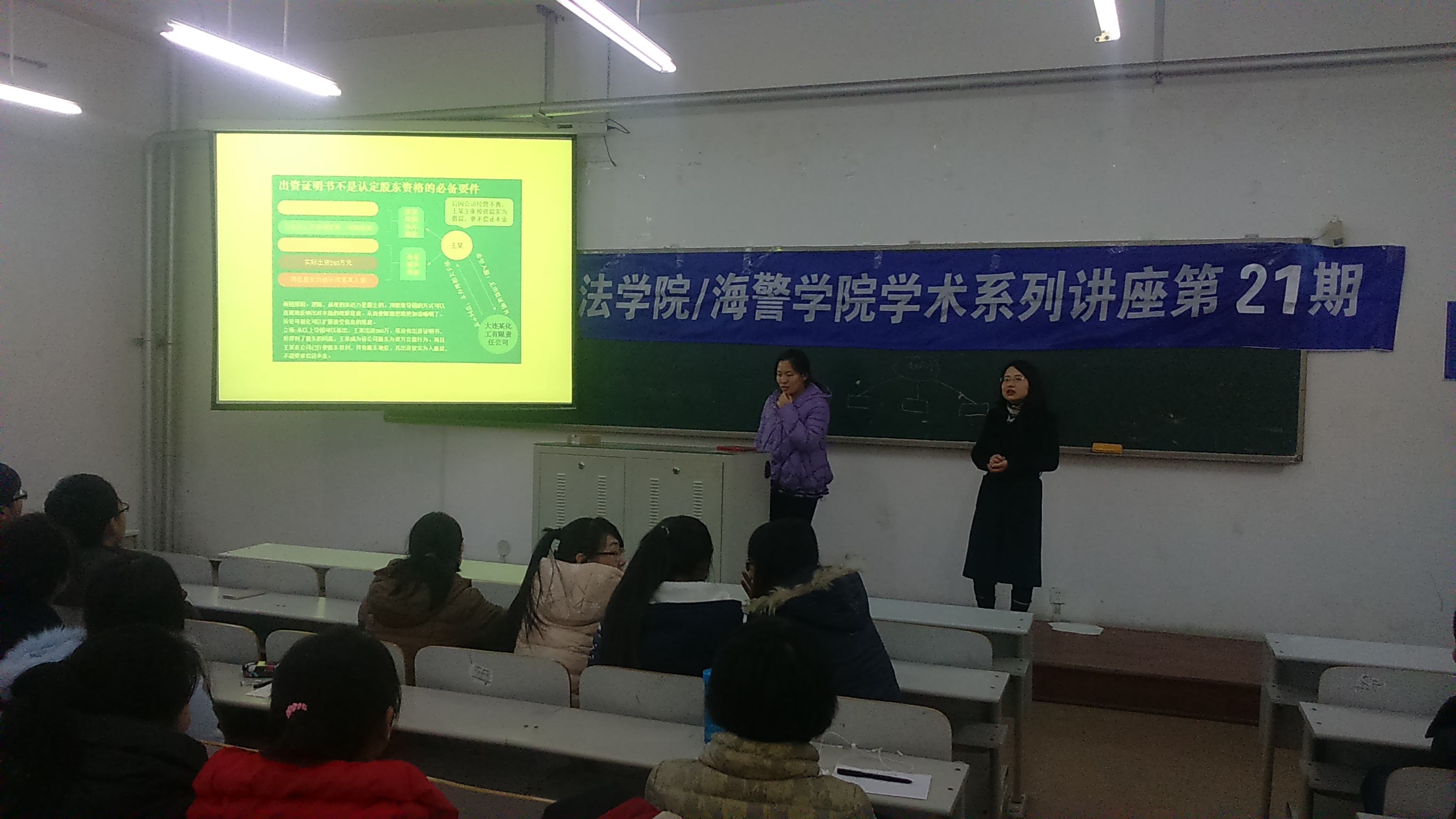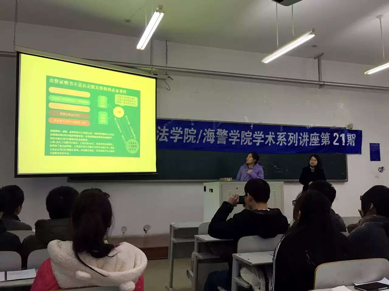 法学院(海警学院)“走向深蓝”学术系列讲座第21期于2015年12月18日下午在黄海校区獐子岛教学楼110教室举办。参加人员包括法学专业2013级、2014级本科生,法律硕士2015级学生以及法学教研室教师。此次讲座主题为《诉讼可视化表达:法律图表制作实务》,主讲人陈敏律师是辽宁智库律师事务所资深律师,也是十大彩票计划网站排名