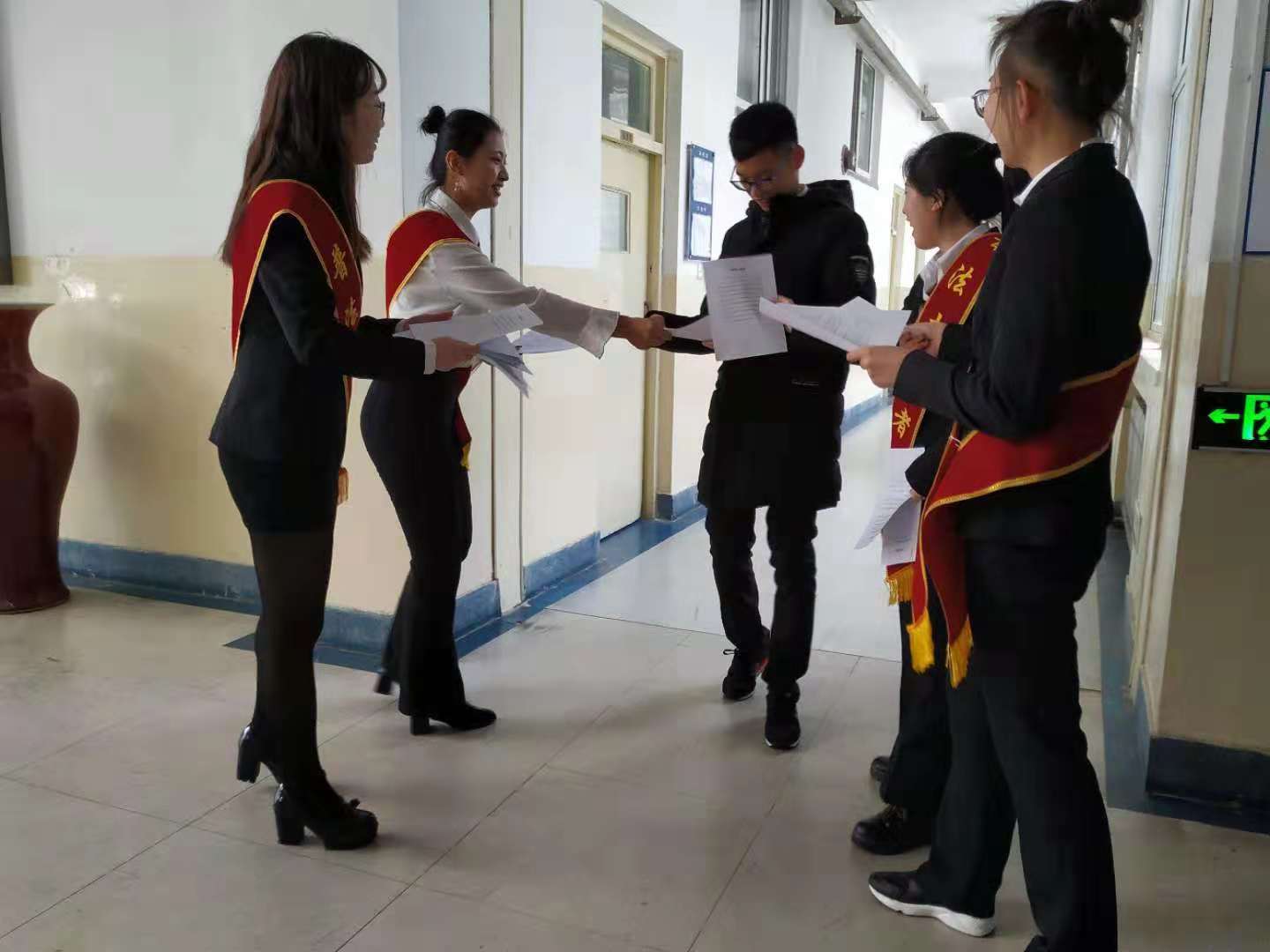 此次活动分为三场。上午,由2016级法学专业的学生主讲,简单向参加活动的同学们介绍了宪法的内容、意义以及教育法、刑法等法律条文。主讲人对法条的精彩讲说赢得了阵阵掌声,并吸引了更多同学的兴趣和参与。中午,法律志愿者在二教分发普法宣传单,更是活跃了校园气氛,进一步地营造了我校法律知识氛围,同学们积极接收宣传单,热情高涨。下午,由2016级行政管理同学和2018级法学同学共同作为主讲人,再次进行了法律宣传,虽然天气寒冷,但是同学们学习法律的热情却丝毫不减。