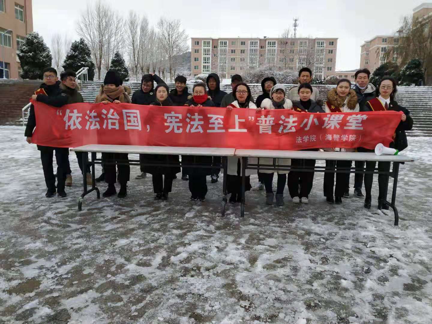 2018年12月6日,上午10点30分,由大连海洋大学法学院(海警学院)和法学学会共同承办的以“弘扬宪法精神,建设法治辽宁”为主题的2018年“宪法日”法治宣传系列活动之普法小课堂在渤海校区小广场举行。此次活动面向大连海洋大学渤海校区全体师生。