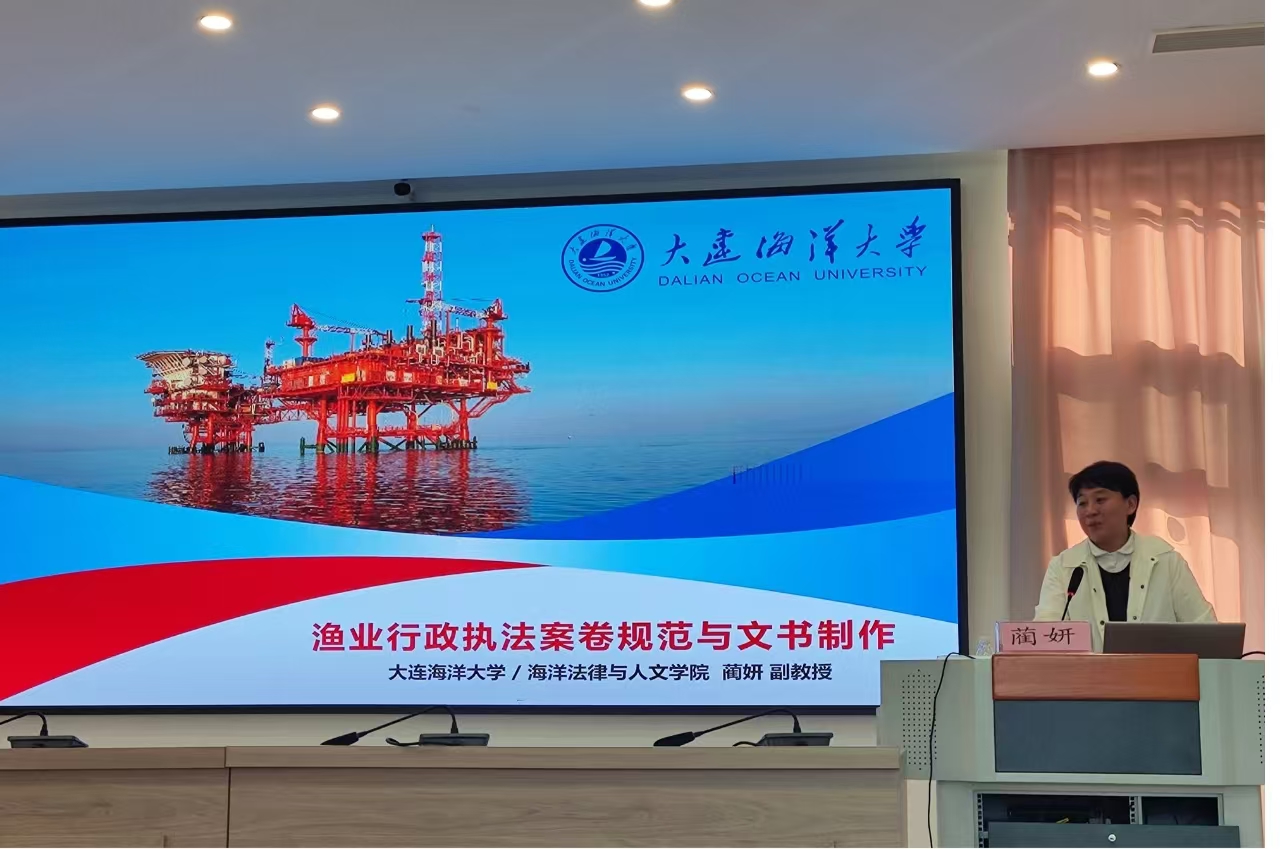 蔺妍副教授以“渔业行政执法案卷规范与文书制作”为题,介绍全国渔政执法案卷评查情况及大连市渔政执法案卷评查情况,讲解渔政执法案卷归档、文书种类及制作等方面的具体要求,列举常见问题,并现场评查两份大连市渔政执法典型案卷,加强渔政执法案卷制作的规范性。