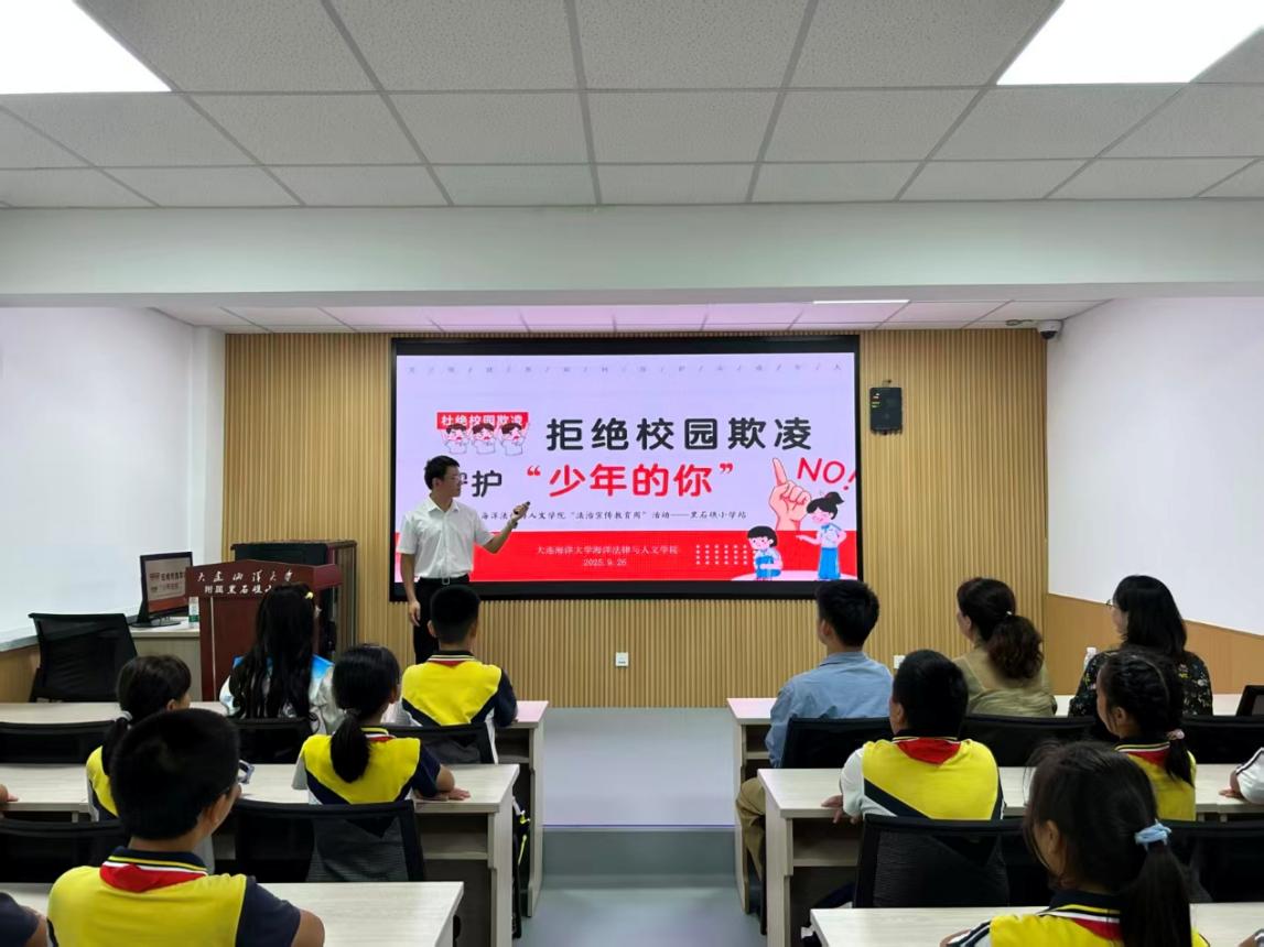 9月26日,十大彩票计划网站排名 前往附属黑石礁小学开展“法治宣传教育周”普法教育活动。附属小学党支部副书记于东梅、副校长邵杰,我院团委书记郭昕黎、法律系教师赵鹏举以及大学生法律服务中心成员参加活动。