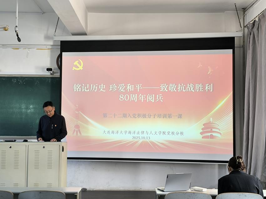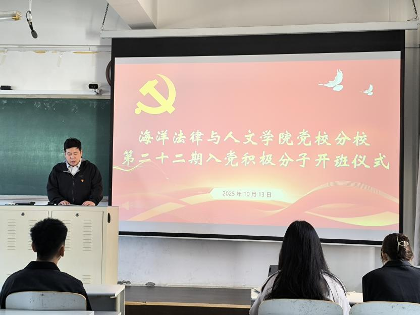 1013日,院于大黑石校区2202教室召开第二十二期入党积极分子培训班开班仪式。党校分校副校长、党委副书记、本科生党支部书记滕鹏,学院组织员杨毅,本科生党支部组织委员邱愉珊,2025级辅导员张恒毅研究生第一党支部书记张曼群、研究生第二党支部书记杨学钱第二十二期全体入党积极分子参加本次开班仪式,本次会议由邱愉珊主持。