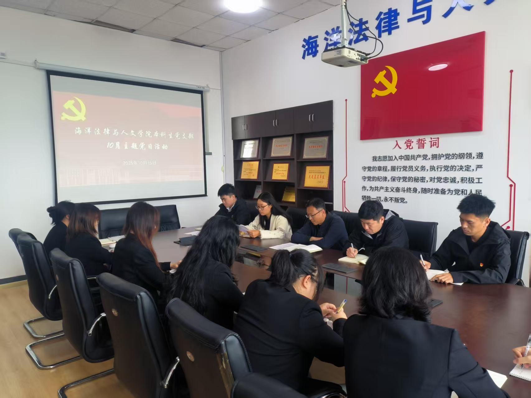 10月15日,我院本科生党支部在党员活动室开展主题党日活动。会议由学院党委副书记、本科生党支部书记滕鹏主持,组织员杨毅、辅导员邱瑜珊、张恒毅、郭艳丽和全体在校生党员参加。