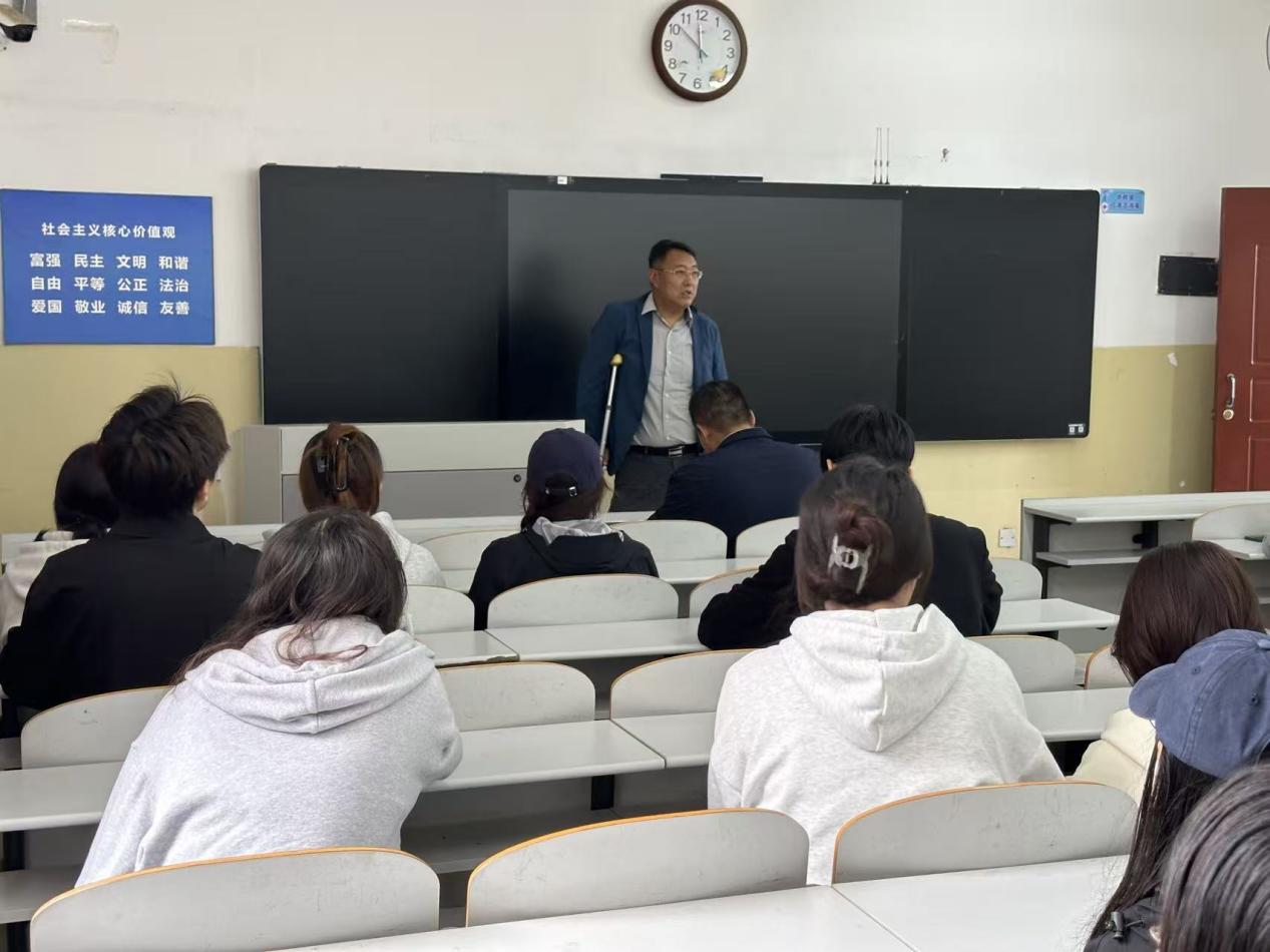 班会伊始,冯处长亲切地向同学们介绍了自己的工作经历以及参与领导干部联系班级活动的初衷。他指出,保卫处的工作虽看似平凡,却肩负着守护校园安全、维护师生权益的重任,这与同学们未来在人力资源管理领域工作中所要秉持的责任意识、规则意识是一致的。同时,他还指出了大学阶段学业规划的重要性。他表示,大学不仅是知识学习的殿堂,更是个人能力培养、职业认知构建的关键时期,清晰的学业规划能帮助同学们避免 “盲目学习”“随波逐流”,使同学们努力的方向更明确。