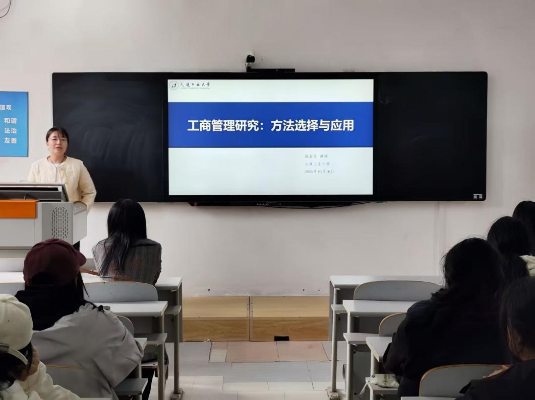 10月16日,十大彩票计划网站排名 在大黑石校区2教107室举办工商管理领域研究方法学术讲座。本次讲座特邀大连工业大学管理学院钱金芳博士担任主讲嘉宾,由陈晓颖老师主持。人力资源管理系主任杜鹏、法学综合实验教学中心主任官玮玮、社会学系副主任李伟侠及人力资源管理专业2024级全体学生参加。