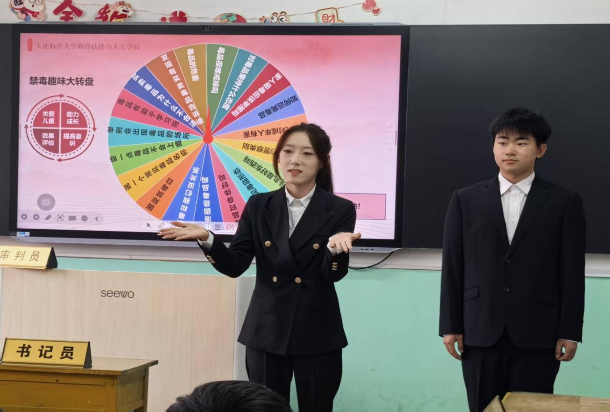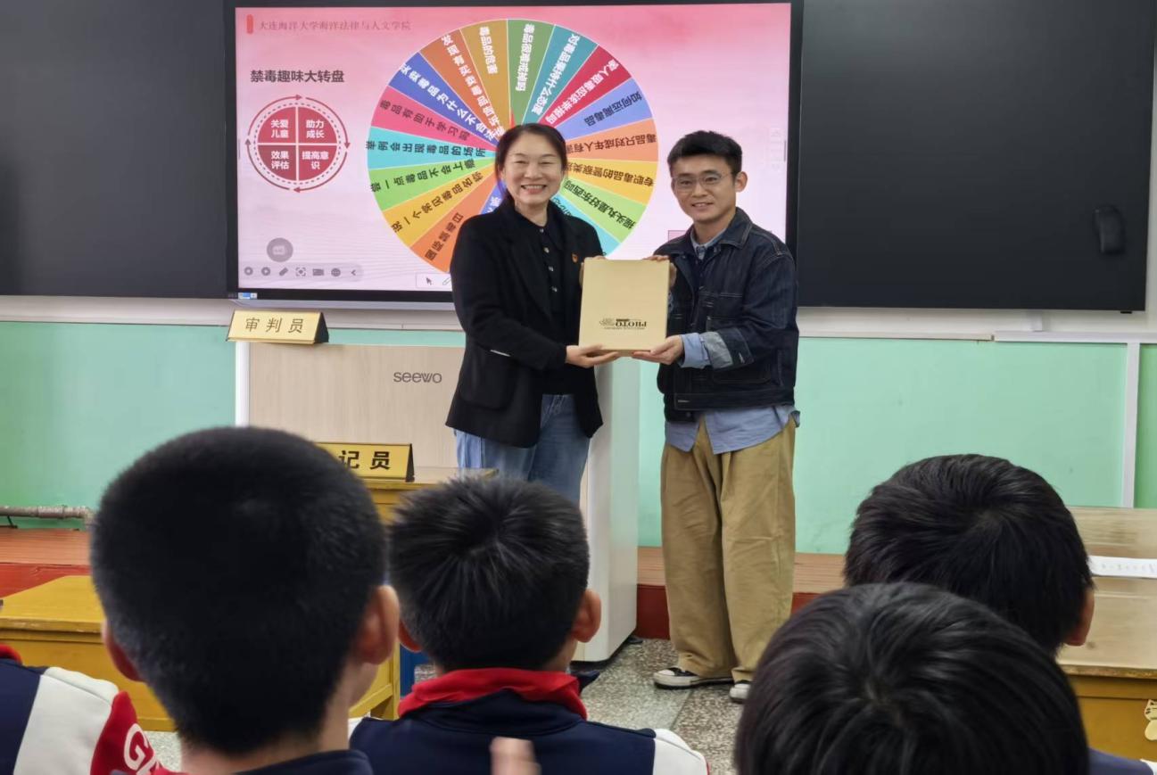 活动现场采取多种的普法方式。大学生法律服务中心成员围绕禁毒主题进行了生动有趣的讲解。随后进行禁毒主题模拟法庭,更加直观地向学生们展示毒品的危害。活动中还设计了互动问答环节,通过趣味问答的方式对所讲内容进行加深巩固。最后,赵鹏举老师代学院向西小磨子小学送上纪念册。