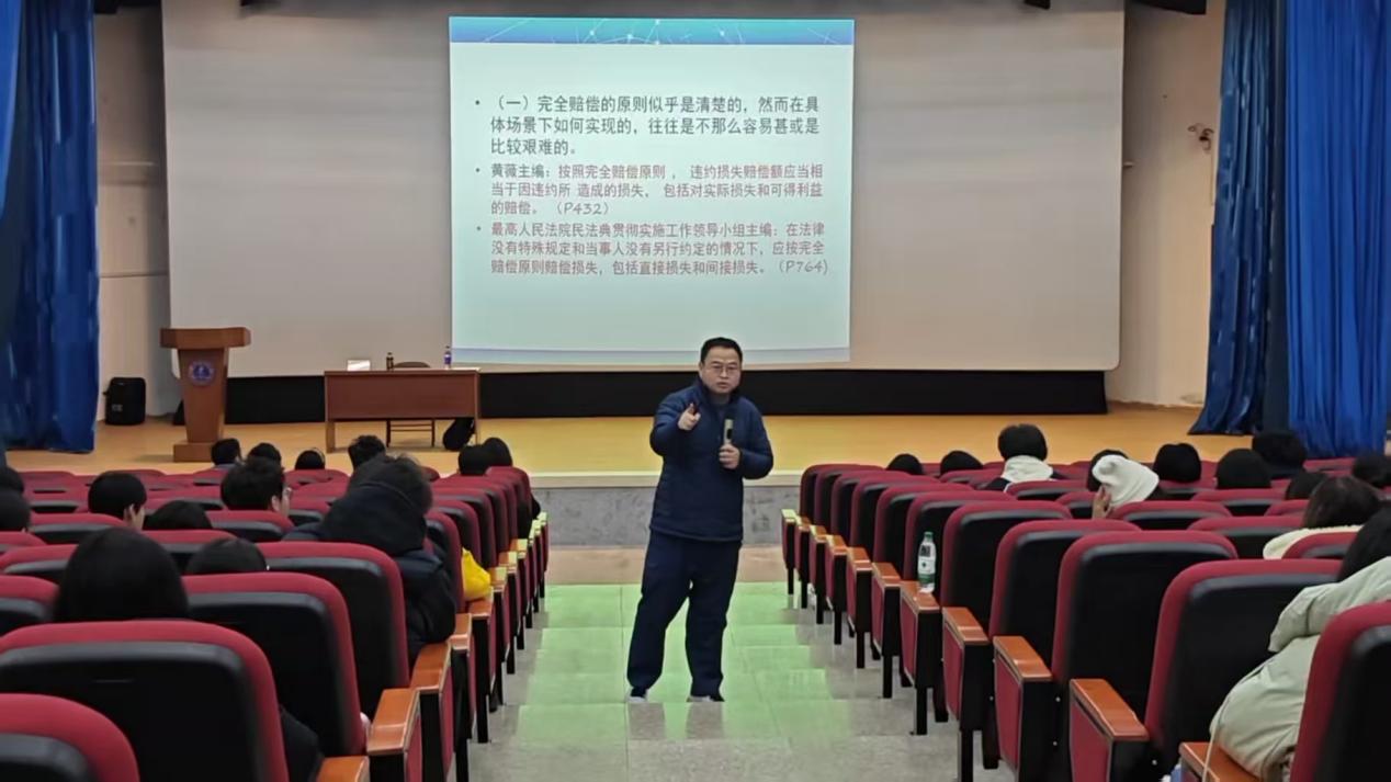 孙良国教授以《违约损害赔偿计算的最新进展》为题,以《合同编通则解释》第60-62条为核心,从实务与学术角度切入,通俗易懂地讲解违约损害赔偿如何计算这一难题。讲座最后,孙良国教授也对同学们提出的问题做出了详细的解答,同学们受益匪浅。