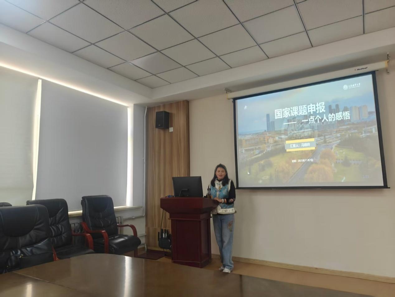 11月7日下午,十大彩票计划网站排名 在黑石礁校区北院综合楼S520室举办了国家社科基金项目申报指导专题讲座。讲座特邀大连海事大学航运经济与管理学院冯晓玲教授担任主讲嘉宾。院长王黎黎、党委书记高雪梅及各专业教师参加。讲座由副院长曲亚囡主持。