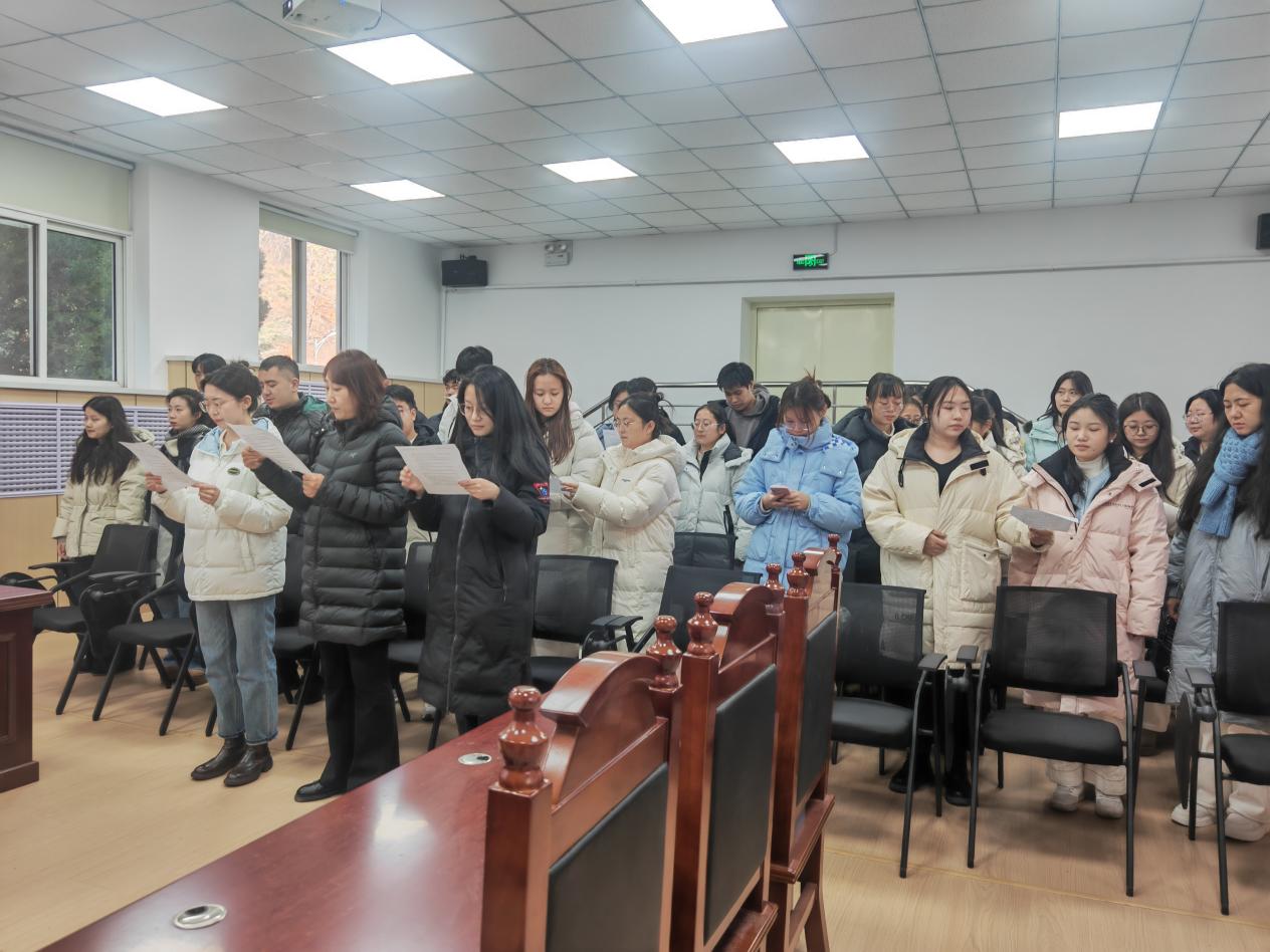 12月4日上午,十大彩票计划网站排名 在黑石礁校区模拟法庭和大黑石校区第二教学楼开展“宪法宣传周”系列活动之“宪法晨读”活动,院长王黎黎、副院长曲亚囡、党委副书记邓云清、学院辅导员以及近200名研究生和本科生共同参与。