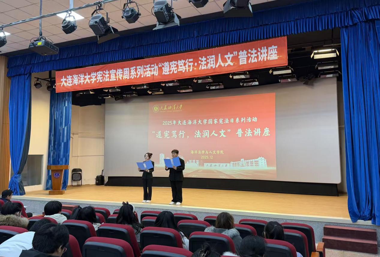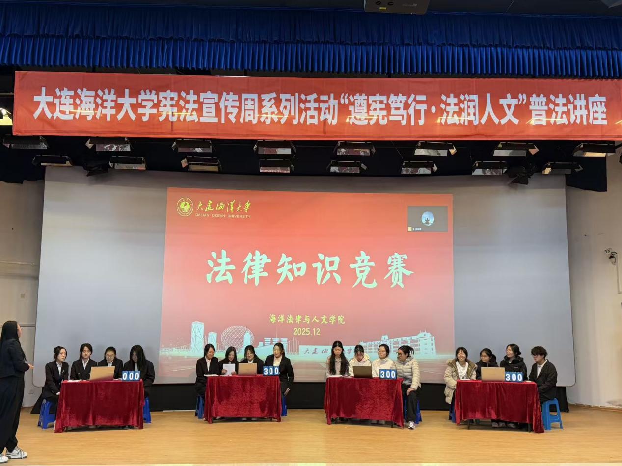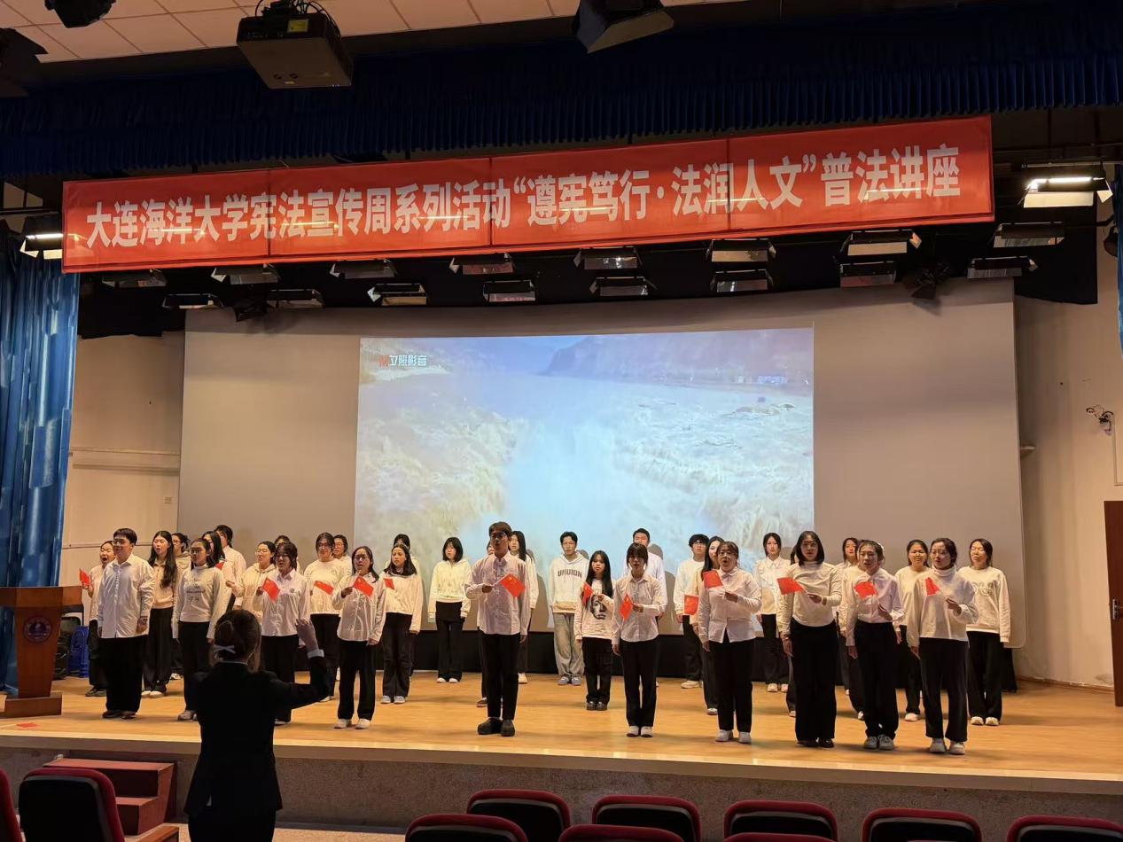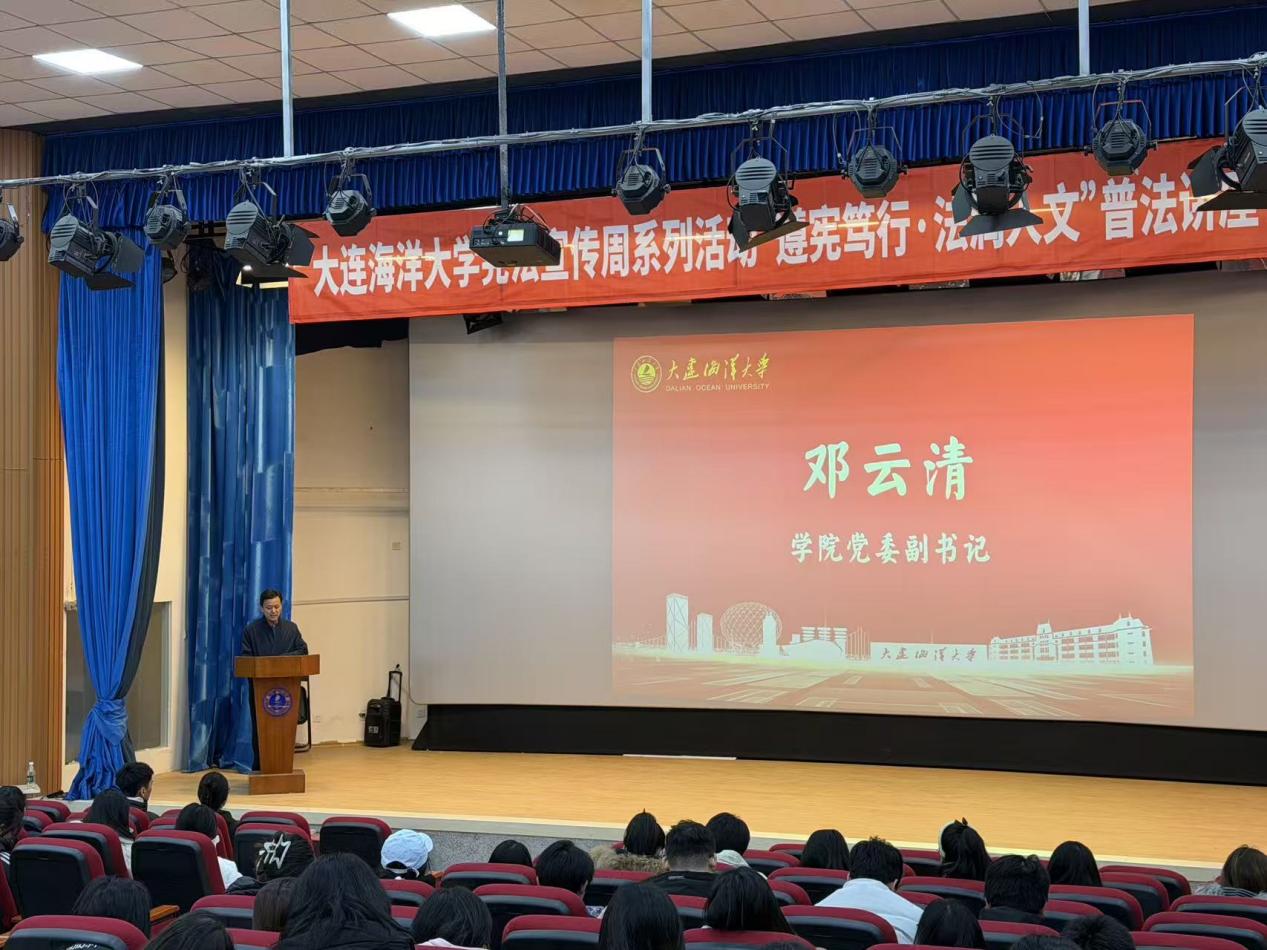 12月5日,十大彩票计划网站排名 在大黑石校区第二阶梯教室举办“宪法宣传周”系列活动之——“遵宪笃行,法润人文”普法讲座暨法律知识竞赛,十大彩票计划网站排名 党委副书记邓云清,辅导员邱愉珊、张恒毅及200余名本科生参加。