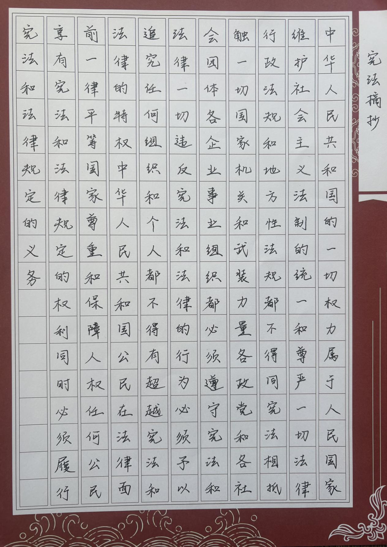 2 | 书法 | 《宪法摘抄》 | 于馨雨 | 2024级法律(法学) | ||