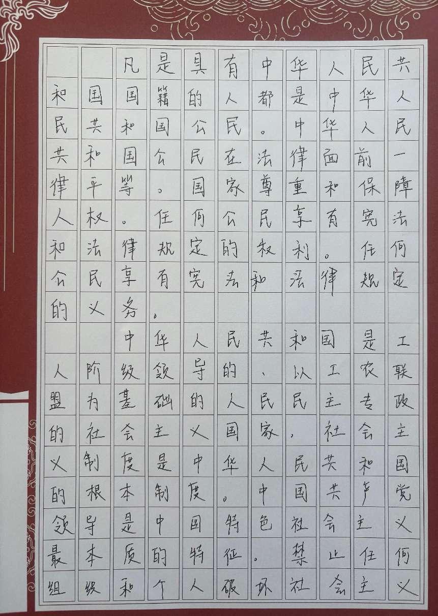 5 | 书法 | 《宪法摘抄》 | 林雨宣 | 2024级法律(法学) | ||