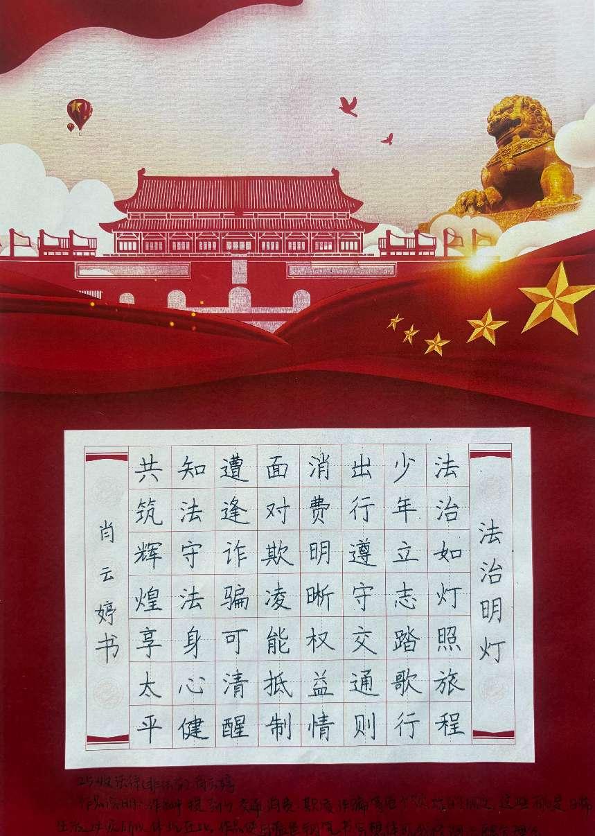 3 | 书法 | 《法治明灯》 | 肖云婷 | 2025级法律(非法学) | ||