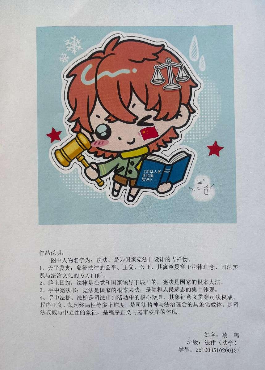 9 | 形象设计 | 《宪法在我心中》 | 蔡一鸣 | 2025级法律(法学) | ||