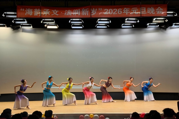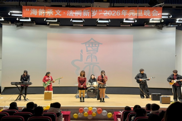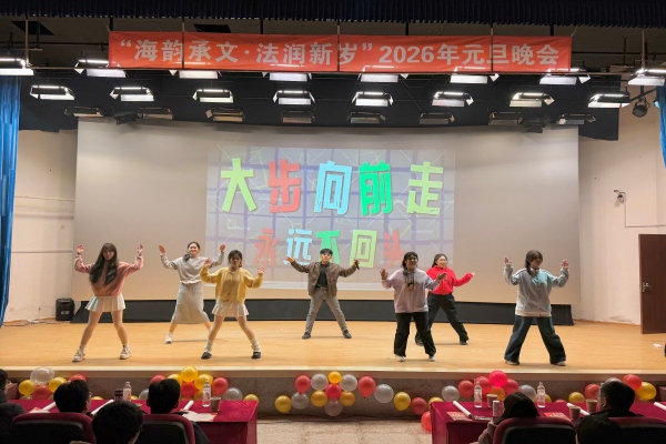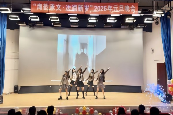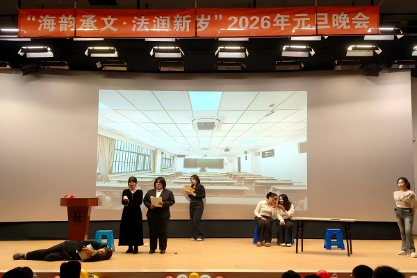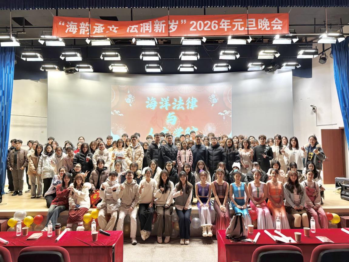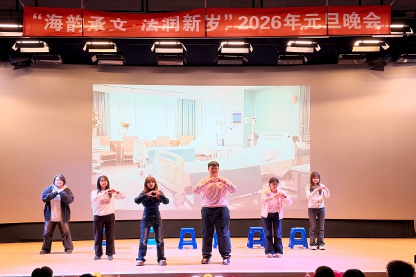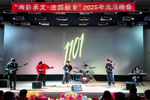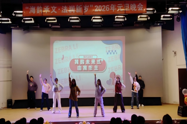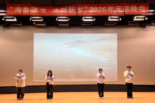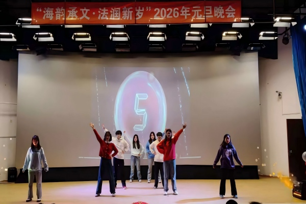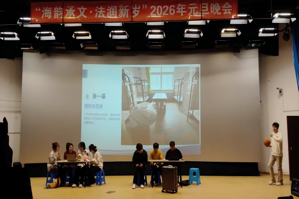 12月30日,十大彩票计划网站排名 于大黑石校区阶梯二教室举办“海韵承文,法润新岁”2026年元旦晚会,大黑石校区管委会办公室副主任刘翔宇,外国语与国际教育学院党委副书记王利明,十大彩票计划网站排名 党委书记高雪梅、党委副书记邓云清、纪委书记张仕春,以及全体辅导员老师,与学院本科生欢聚一堂,共同迎接2026年的到来。