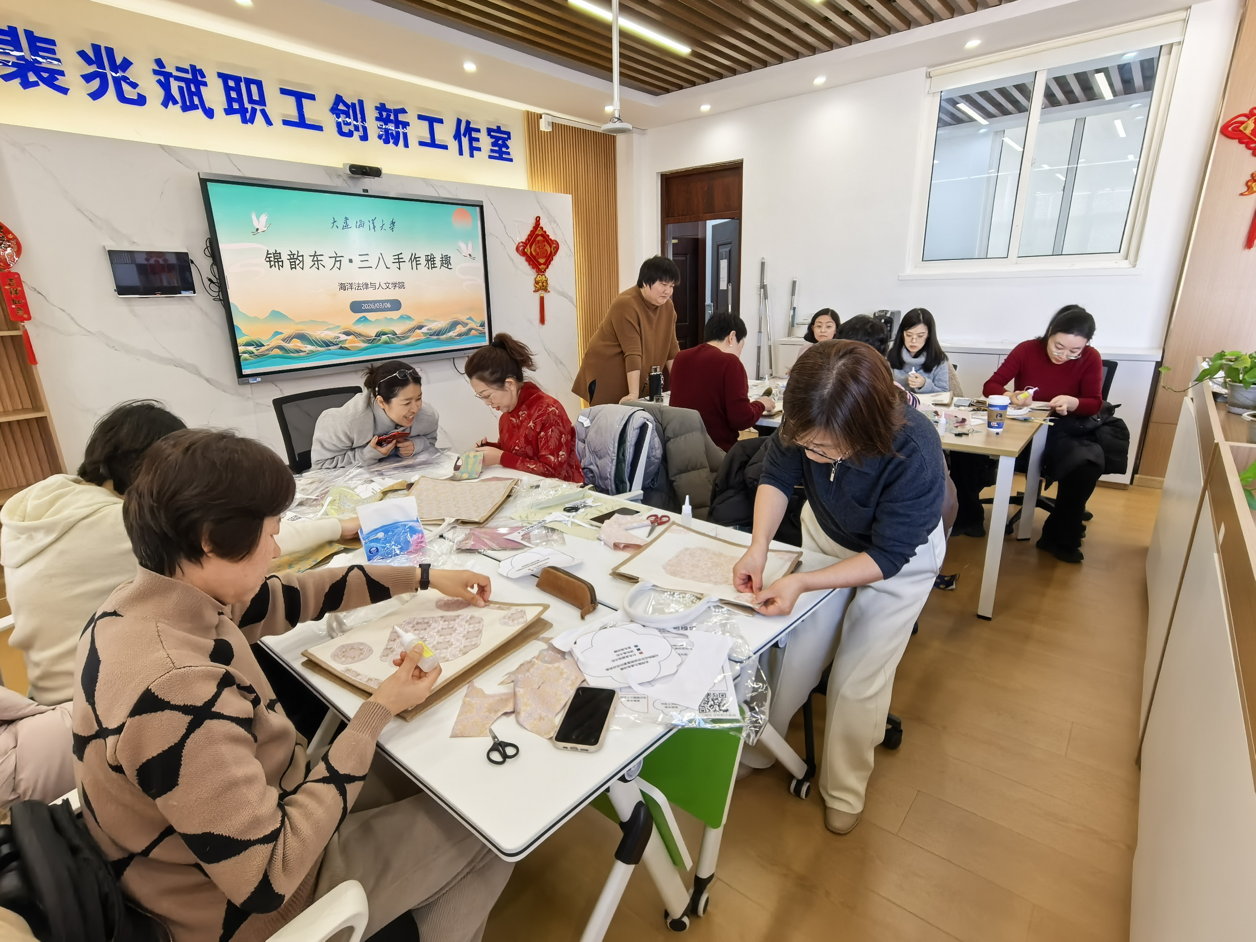 3月6日和10日,十大彩票计划网站排名 在黑石礁校区北院办公楼举行“锦韵东方·三八手作雅趣”庆祝国际劳动妇女节主题活动。学院女教师齐聚一堂,在指尖流转间感受宋锦非遗的千年魅力,共赴一场兼具文化底蕴与节日温情的雅致之约。