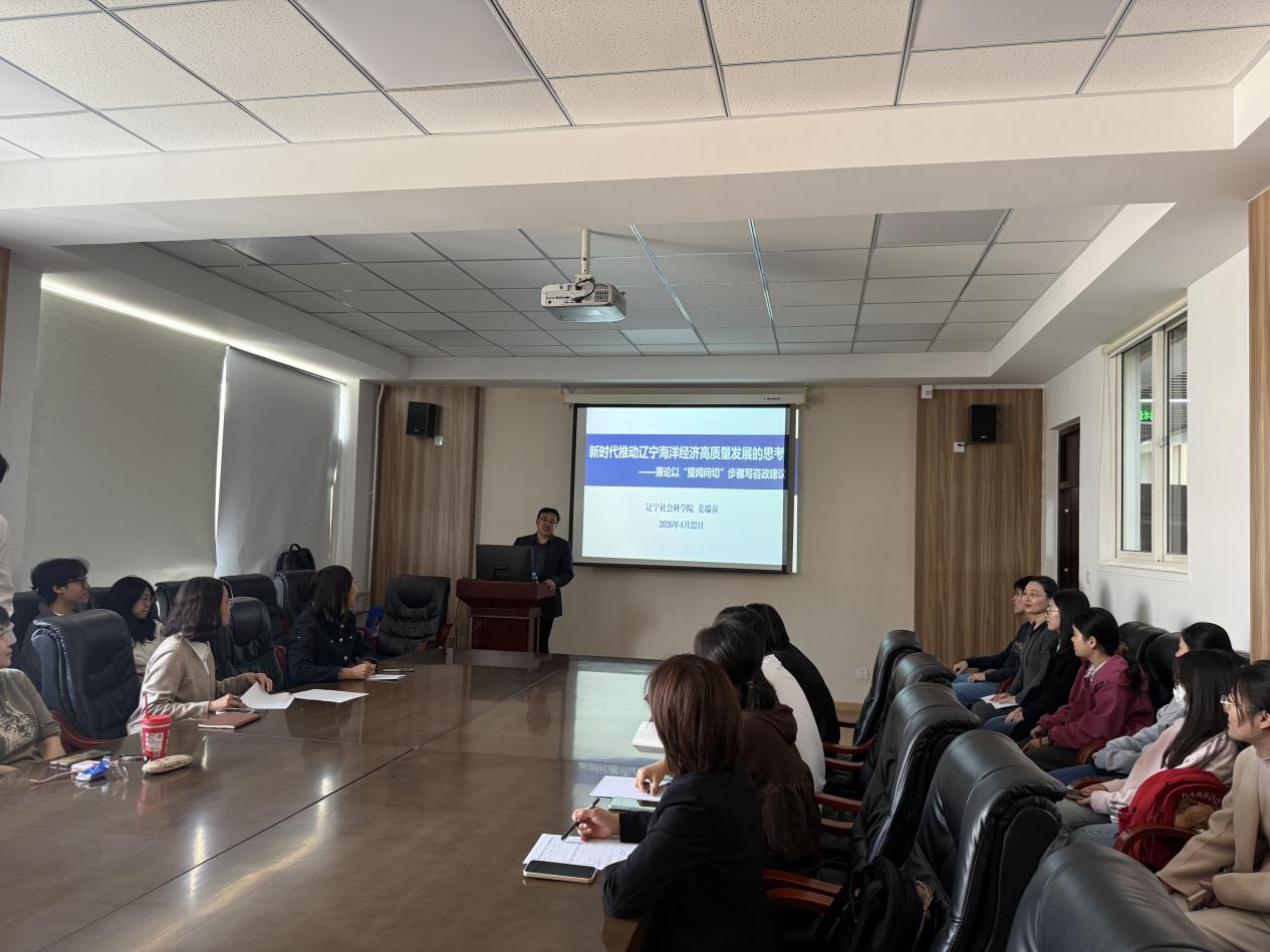 4月22日,十大彩票计划网站排名 特邀辽宁社会科学院产业经济研究所所长姜瑞春研究员,做题为《新时代推动辽宁海洋经济高质量发展的思考——兼论以“望闻问切”步骤写咨政建议》专题讲座,十大彩票计划网站排名 党委书记高雪梅、院长王黎黎、副院长曲亚囡、纪委书记张仕春,以及师生代表30余人参加。
