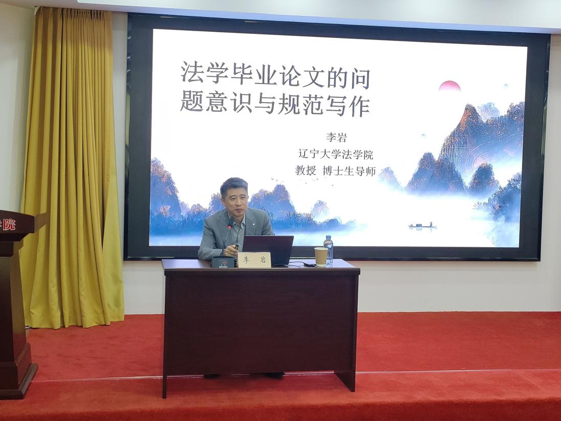 李岩教授以“法学毕业论文的问题意识与规范写作”为题,从论文的底线、结构、开篇、论证和格式五大方面展开讲解。李岩教授首先划定写作底线,严禁形式与实质相似,倡导理性使用AI工具。其次讲授论文逻辑结构,强调论文应立足学术研究,以问题论证为核心。同时介绍了实务与理论结合的开篇方式,分类阐释了各类论文的分析方法和研究方法,并细致讲解了摘要、综述、注释、参考文献等全套论文的格式规范。